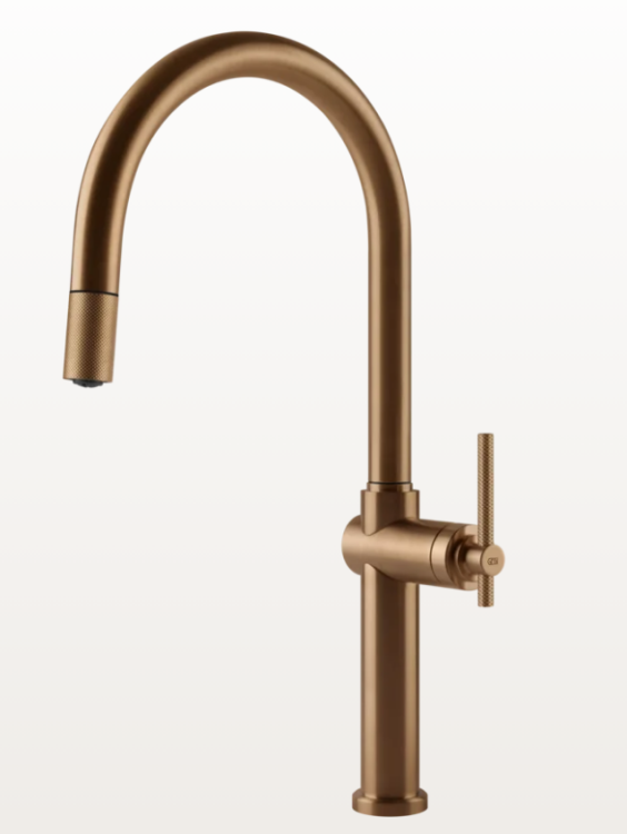 Смеситель для кухни, Gessi, Habito, тип открывания воды-однорычажный, тип регулирования воды-керамический картридж, монтаж-на раковину/столешницу, отверстия для монтажа-1, высота, мм-499, вынос излива, мм-240, тип излива-поворотный, тип подводки-гибкая, стандарт подвода воды-3/8", цвет-Warm Bronze Brushed PVD Смеситель для кухни, Gessi, Habito, цвет-Warm Bronze Brushed PVD