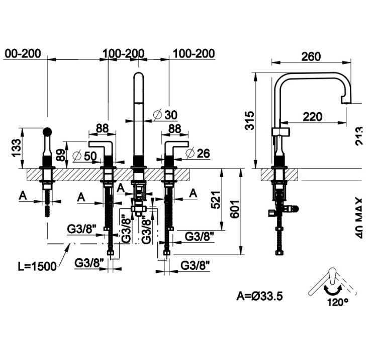Смеситель для кухни, Gessi, Inciso, с вытяжным душем, тип открывания воды-вентильный, тип регулирования воды-керамическая кран-букса, монтаж-на раковину/столешницу, отверстия для монтажа-4, высота, мм-315, вынос излива, мм-220, тип излива-поворотный, тип подводки-гибкая, стандарт подвода воды-3/8", цвет-Black Metal Brushed PVD Смеситель для кухни, Gessi, Inciso, цвет-Black Metal Brushed PVD
