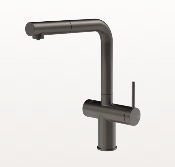 Смеситель для кухни, Gessi, INEDITO, с функцией фильтрации воды, тип открывания воды-однорычажный, тип регулирования воды-керамический картридж, монтаж-на раковину/столешницу, отверстия для монтажа-1, высота, мм-306, вынос излива, мм-217, тип излива-поворотный, тип подводки-гибкая, стандарт подвода воды-3/8", цвет-Black Metal Brushed PVD Смеситель для кухни, Gessi, INEDITO, с функцией фильтрации воды, цвет-Black Metal Brushed PVD