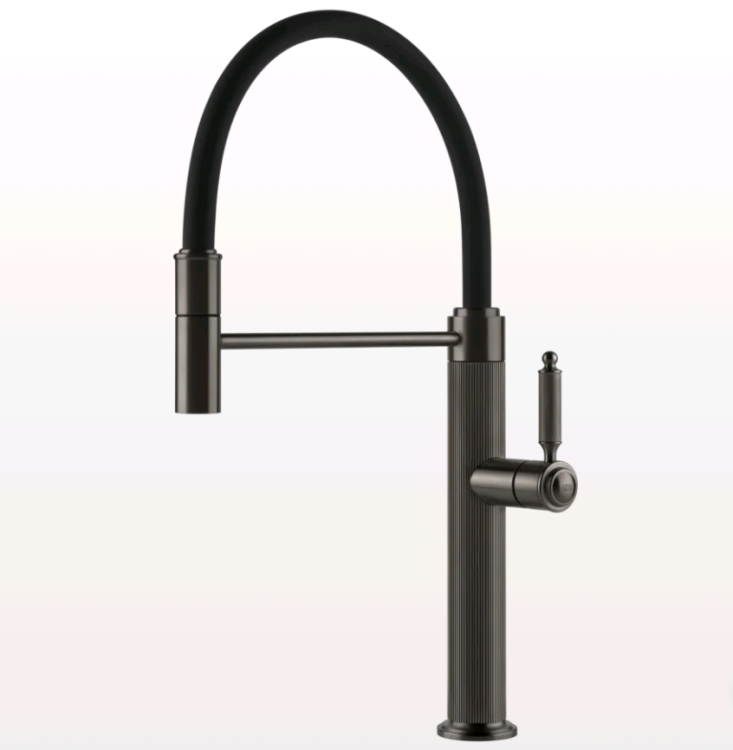 Смеситель для кухни, Gessi, VENTI20, тип открывания воды-однорычажный, тип регулирования воды-керамический картридж, монтаж-на раковину/столешницу, отверстия для монтажа-1, высота, мм-486, вынос излива, мм-230, тип излива-выдвижной, поворотный, тип подводки-гибкая, стандарт подвода воды-3/8", цвет-Black Metal Brushed PVD Смеситель для кухни, Gessi, VENTI20, цвет-Black Metal Brushed PVD