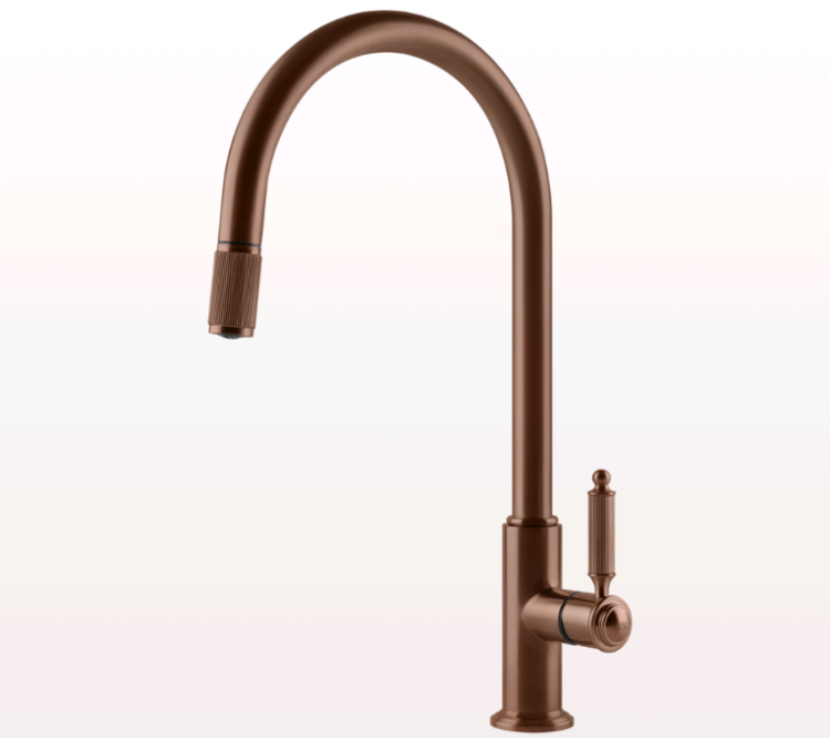 Смеситель для кухни, Gessi, VENTI20, тип открывания воды-однорычажный, тип регулирования воды-керамический картридж, монтаж-на раковину/столешницу, отверстия для монтажа-1, высота, мм-418, вынос излива, мм-216, тип излива-поворотный, тип подводки-гибкая, стандарт подвода воды-3/8", цвет-медь брашированная/шлифованная (Copper Brushed) Смеситель для кухни, Gessi, VENTI20, цвет-медь брашированная/шлифованная (Copper Brushed)
