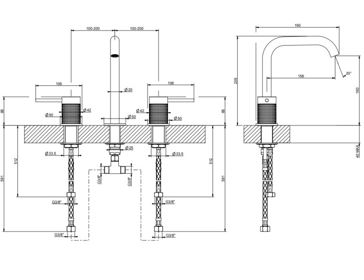 Смеситель для раковины, Gessi, 316 Cesello, тип открывания воды-вентильный, тип регулирования воды-керамический картридж, монтаж-на раковину/столешницу, отверстия для монтажа-3, высота, мм-205, вынос излива, мм-156, тип излива-неподвижный, донный клапан-отсутствует, тип подводки-гибкая, стандарт подвода воды-3/8", цвет-Brushed Brass PVD Смеситель для раковины, Gessi, 316 Cesello, цвет-Brushed Brass PVD