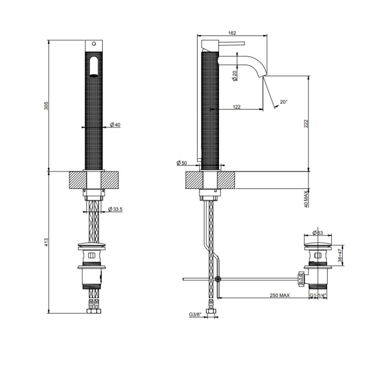 Смеситель для раковины, Gessi, 316 Cesello, тип открывания воды-однорычажный, тип регулирования воды-керамический картридж, монтаж-на раковину/столешницу, отверстия для монтажа-1, высота, мм-305, вынос излива, мм-122, тип излива-неподвижный, донный клапан-есть, тип подводки-гибкая, стандарт подвода воды-3/8", цвет-черный матовый Смеситель для раковины, Gessi, 316 Cesello, цвет-черный матовый
