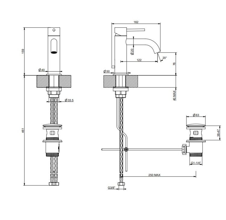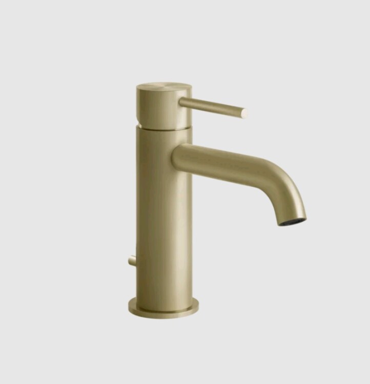 Смеситель для раковины, Gessi, 316 Flessa, тип открывания воды-однорычажный, тип регулирования воды-керамический картридж, монтаж-на раковину/столешницу, отверстия для монтажа-1, высота, мм-159, вынос излива, мм-122, тип излива-неподвижный, донный клапан-есть, тип подводки-гибкая, стандарт подвода воды-3/8", цвет-Brushed Brass PVD Смеситель для раковины, Gessi, 316 Flessa, цвет-Brushed Brass PVD