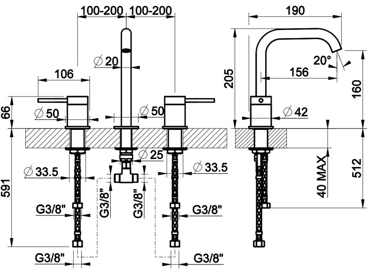 Смеситель для раковины, Gessi, 316 Flessa, тип открывания воды-вентильный, тип регулирования воды-керамическая кран-букса, монтаж-на раковину/столешницу, отверстия для монтажа-3, высота, мм-205, вынос излива, мм-156, тип излива-неподвижный, донный клапан-отсутствует, тип подводки-гибкая, стандарт подвода воды-3/8", цвет-Brushed Brass PVD Смеситель для раковины, Gessi, 316 Flessa, цвет-Brushed Brass PVD