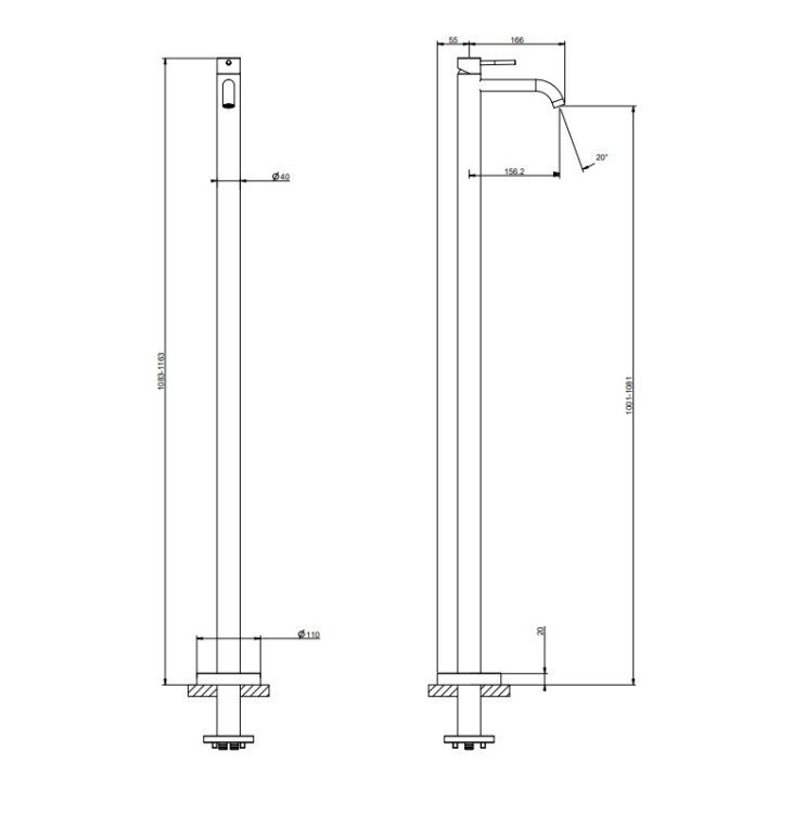 Смеситель для раковины, Gessi, 316 Flessa, тип открывания воды-однорычажный, тип регулирования воды-керамический картридж, монтаж-напольный, отверстия для монтажа-1, высота, мм-1083-1163, вынос излива, мм-156,2, тип излива-неподвижный, донный клапан-отсутствует, тип подводки-жесткая, стандарт подвода воды-1/2", внутренняя часть-необходимо заказать, цвет-черный матовый Смеситель для раковины, Gessi, 316 Flessa, цвет-черный матовый