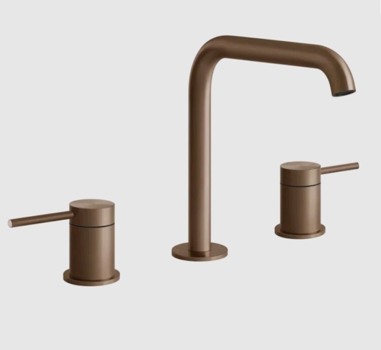 Смеситель для раковины, Gessi, 316 Flessa, тип открывания воды-вентильный, тип регулирования воды-керамическая кран-букса, монтаж-на раковину/столешницу, отверстия для монтажа-3, высота, мм-205, вынос излива, мм-156, тип излива-неподвижный, донный клапан-отсутствует, тип подводки-гибкая, стандарт подвода воды-3/8", цвет-Copper Brushed PVD Смеситель для раковины, Gessi, 316 Flessa, цвет-Copper Brushed PVD