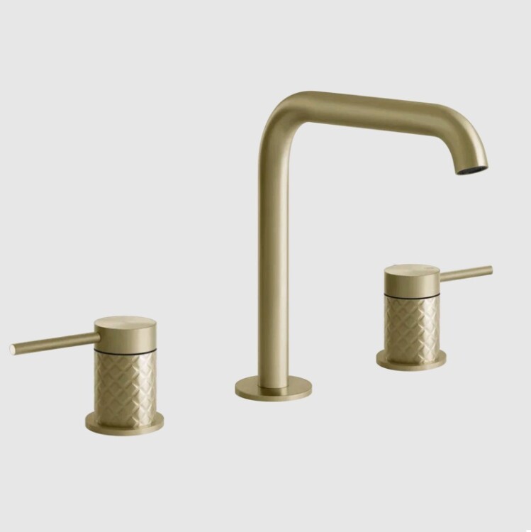 Смеситель для раковины, Gessi, 316 Intreccio, тип открывания воды-вентильный, тип регулирования воды-керамическая кран-букса, монтаж-на раковину/столешницу, отверстия для монтажа-3, высота, мм-201, вынос излива, мм-156, тип излива-неподвижный, донный клапан-отсутствует, тип подводки-гибкая, стандарт подвода воды-3/8", цвет-Brushed Brass PVD Смеситель для раковины, Gessi, 316 Intreccio, цвет-Brushed Brass PVD