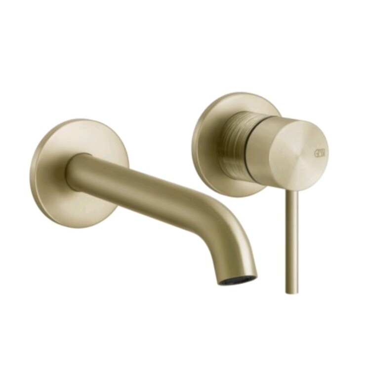 Смеситель для раковины, Gessi, 316 Trame, тип открывания воды-однорычажный, тип регулирования воды-керамический картридж, монтаж-настенный встраиваемый, отверстия для монтажа-2, высота, мм-114, вынос излива, мм-117-147, тип излива-неподвижный, донный клапан-отсутствует, тип подводки-жесткая, стандарт подвода воды-1/2", внутренняя часть-необходимо заказать, цвет-Brushed Brass PVD Смеситель для раковины, Gessi, 316 Trame, цвет-Brushed Brass PVD