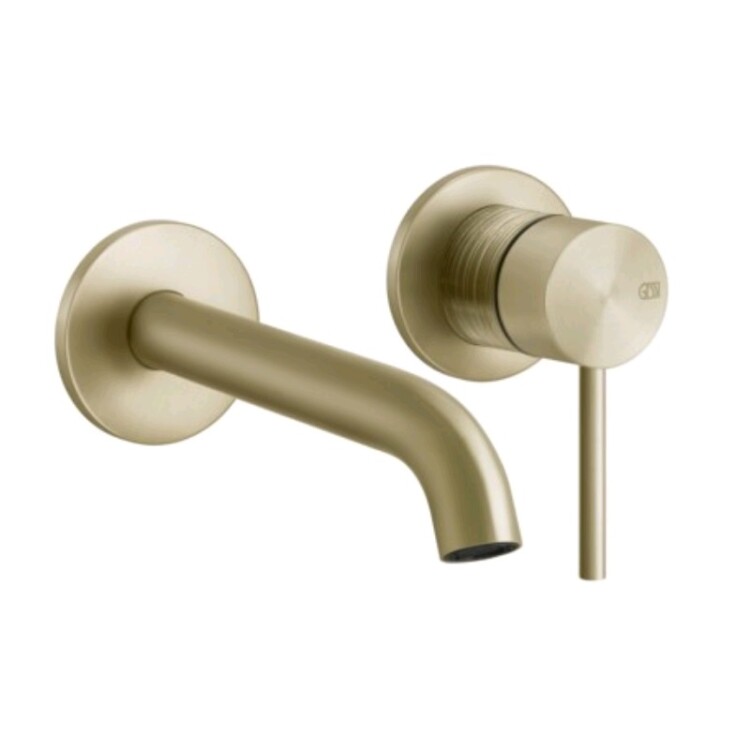 Смеситель для раковины, Gessi, 316 Trame, тип открывания воды-однорычажный, тип регулирования воды-керамический картридж, монтаж-настенный встраиваемый, отверстия для монтажа-2, высота, мм-114, вынос излива, мм-171-201, тип излива-неподвижный, донный клапан-отсутствует, тип подводки-жесткая, стандарт подвода воды-1/2", внутренняя часть-необходимо заказать, цвет-Brushed Brass PVD Смеситель для раковины, Gessi, 316 Trame, цвет-Brushed Brass PVD