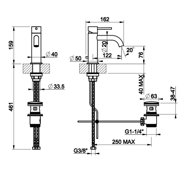 Смеситель для раковины, Gessi, 316 Trame, тип открывания воды-однорычажный, тип регулирования воды-керамический картридж, монтаж-на раковину/столешницу, отверстия для монтажа-1, высота, мм-159, вынос излива, мм-122, тип излива-неподвижный, донный клапан-есть, тип подводки-гибкая, стандарт подвода воды-3/8", цвет-Warm Bronze Brushed PVD Смеситель для раковины, Gessi, 316 Trame, цвет-Warm Bronze Brushed PVD