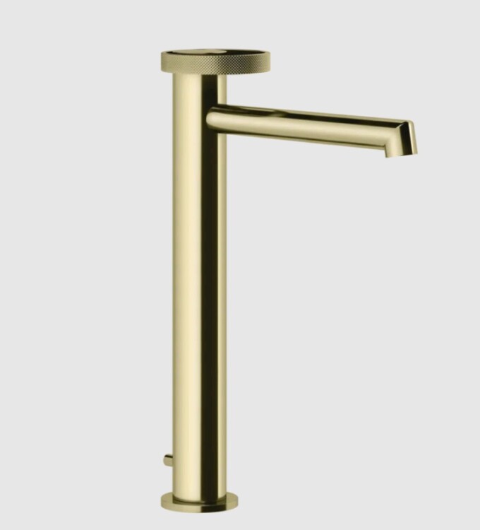 Смеситель для раковины, Gessi, Anello, тип открывания воды-однорычажный, тип регулирования воды-керамический картридж, монтаж-на раковину/столешницу, отверстия для монтажа-1, высота, мм-318, вынос излива, мм-174, тип излива-неподвижный, донный клапан-есть, тип подводки-гибкая, стандарт подвода воды-3/8", цвет-Brass PVD Смеситель для раковины, Gessi, Anello, цвет-Brass PVD
