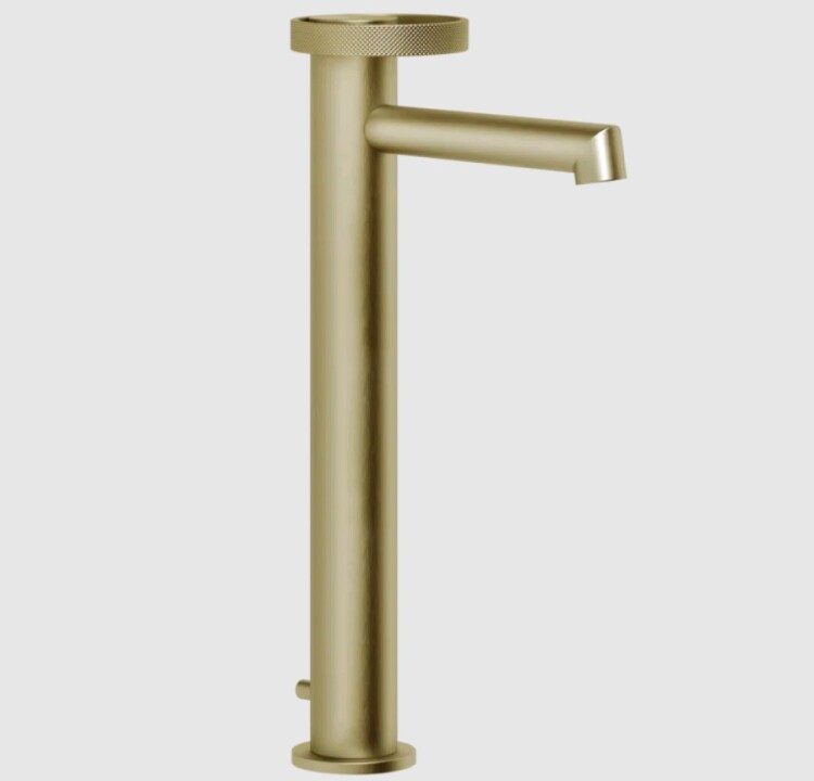 Смеситель для раковины, Gessi, Anello, тип открывания воды-однорычажный, тип регулирования воды-керамический картридж, монтаж-на раковину/столешницу, отверстия для монтажа-1, высота, мм-318, вынос излива, мм-128, тип излива-неподвижный, донный клапан-есть, тип подводки-гибкая, стандарт подвода воды-3/8", цвет-Brushed Brass PVD Смеситель для раковины, Gessi, Anello, цвет-Brushed Brass PVD
