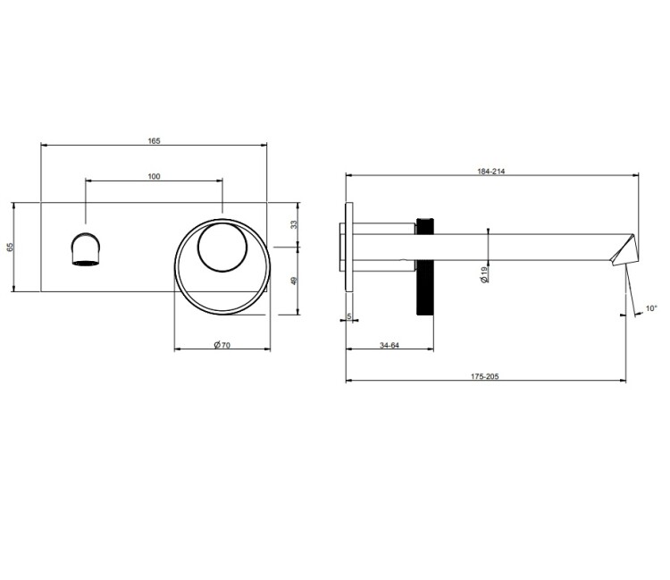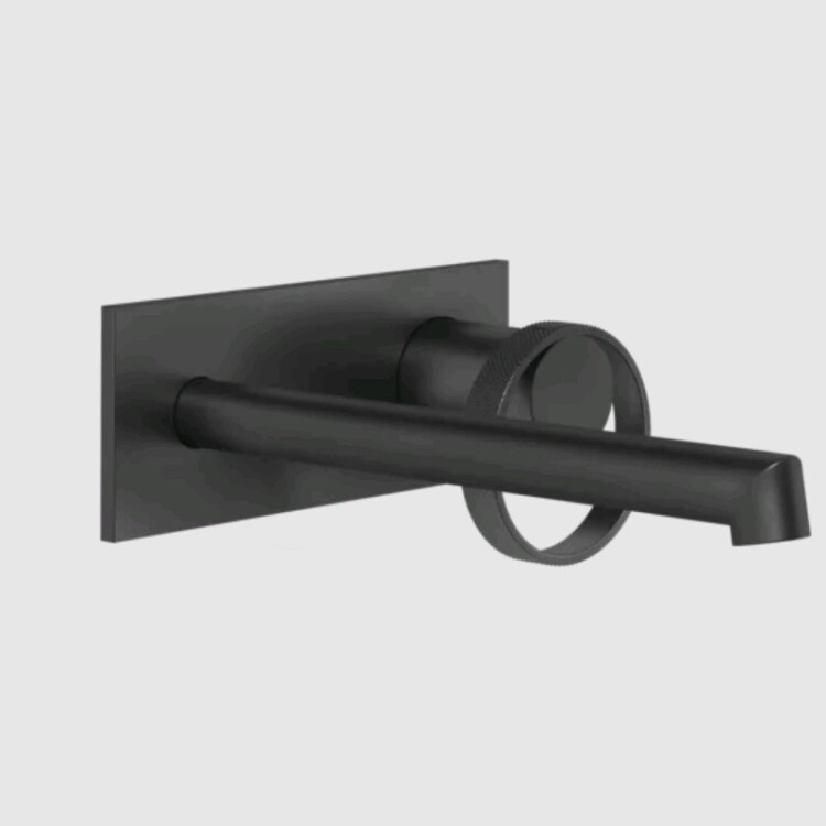 Смеситель для раковины, Gessi, Anello, тип открывания воды-однорычажный, тип регулирования воды-керамический картридж, монтаж-настенный встраиваемый, отверстия для монтажа-2, высота, мм-82, вынос излива, мм-175-205, тип излива-неподвижный, донный клапан-отсутствует, тип подводки-жесткая, стандарт подвода воды-1/2", внутренняя часть-необходимо заказать, цвет-черный матовый Смеситель для раковины, Gessi, Anello, цвет-черный матовый