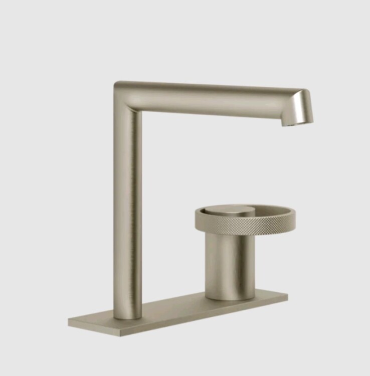 Смеситель для раковины, Gessi, Anello, тип открывания воды-однорычажный, тип регулирования воды-керамический картридж, монтаж-на раковину/столешницу, отверстия для монтажа-2, высота, мм-162, вынос излива, мм-144, тип излива-неподвижный, донный клапан-отсутствует, тип подводки-гибкая, стандарт подвода воды-3/8", цвет-Finox Brushed Nickel Смеситель для раковины, Gessi, Anello, цвет-Finox Brushed Nickel