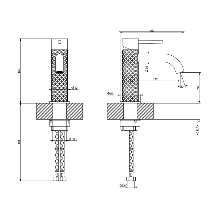 Смеситель для раковины, Gessi, 316 Intreccio, тип открывания воды-однорычажный, тип регулирования воды-керамический картридж, монтаж-на раковину/столешницу, отверстия для монтажа-1, высота, мм-159, вынос излива, мм-122, тип излива-неподвижный, донный клапан-отсутствует, тип подводки-гибкая, стандарт подвода воды-3/8", цвет-Steel Brushed Смеситель для раковины, Gessi, 316 Intreccio, цвет-Steel Brushed