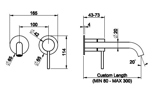 Смеситель для раковины, Gessi, Flessa, тип открывания воды-однорычажный, тип регулирования воды-керамический картридж, монтаж-настенный встраиваемый, отверстия для монтажа-2, высота, мм-65, вынос излива, мм-230, тип излива-неподвижный, донный клапан-отсутствует, тип подводки-жесткая, внутренняя часть-необходимо заказать, цвет-Black Metal Brushed PVD Смеситель для раковины, Gessi, Flessa, цвет-Black Metal Brushed PVD