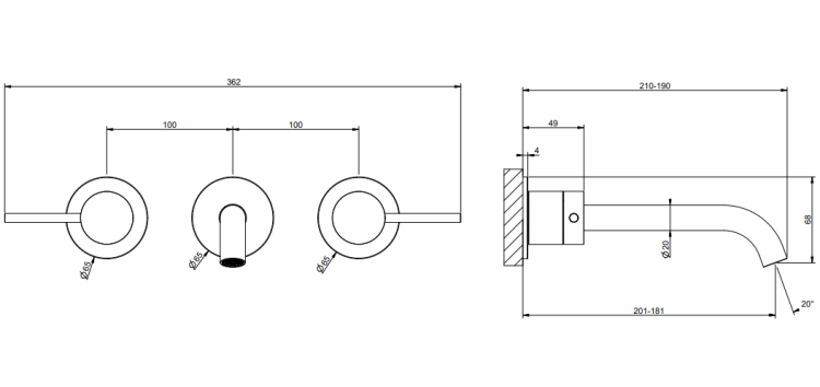 Смеситель для раковины, Gessi, Flessa, тип открывания воды-двухрычажный, тип регулирования воды-керамический картридж, монтаж-настенный встраиваемый, отверстия для монтажа-3, высота, мм-68, вынос излива, мм-201, тип излива-неподвижный, донный клапан-отсутствует, стандарт подвода воды-1/2", внутренняя часть-необходимо заказать, цвет-Black XL Смеситель для раковины, Gessi, Flessa, цвет-Black XL