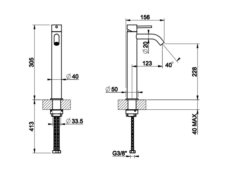 Смеситель для раковины, Gessi, Flessa, тип открывания воды-однорычажный, отверстия для монтажа-1, высота, мм-305, вынос излива, мм-123, тип излива-высокий, тип подводки-гибкая, стандарт подвода воды-3/8", цвет-Copper Brushed PVD Смеситель для раковины, Gessi, Flessa, цвет-Copper Brushed PVD