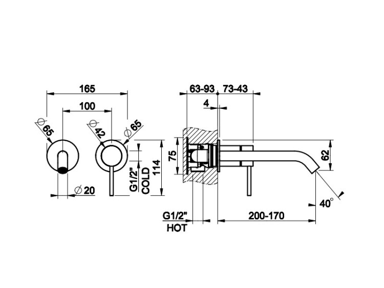 Смеситель для раковины, Gessi, Flessa, тип открывания воды-однорычажный, тип установки-встраиваемый в стену, отверстия для монтажа-2, вынос излива, мм-200, внутренняя часть-необходимо заказать, цвет-Copper Brushed PVD Смеситель для раковины, Gessi, Flessa, цвет-Copper Brushed PVD