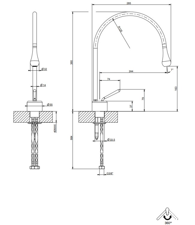 Смеситель для раковины, Gessi, Goссia, тип открывания воды-однорычажный джойстик, тип регулирования воды-керамический картридж, монтаж-на раковину/столешницу, отверстия для монтажа-1, высота, мм-360, вынос излива, мм-244, радиус излива-125, тип излива-поворотный, донный клапан-отсутствует, тип подводки-гибкая, стандарт подвода воды-3/8", цвет-Copper Brushed GHRC Смеситель для раковины, Gessi, Goссia, цвет-Copper Brushed GHRC
