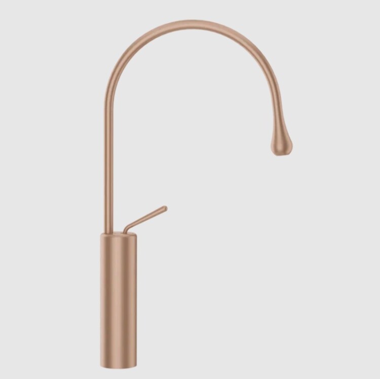 Смеситель для раковины, Gessi, Goссia, тип открывания воды-однорычажный джойстик, тип регулирования воды-керамический картридж, монтаж-на раковину/столешницу, отверстия для монтажа-1, высота, мм-523, вынос излива, мм-244, радиус излива -125, тип излива-поворотный, донный клапан-отсутствует, тип подводки-гибкая, стандарт подвода воды-3/8", цвет-Copper Brushed GHRC Смеситель для раковины, Gessi, Goссia, цвет-Copper Brushed GHRC