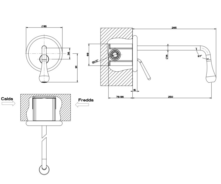 Смеситель для раковины, Gessi, Goссia, тип открывания воды-однорычажный джойстик, тип регулирования воды-керамический картридж, монтаж-настенный встраиваемый, отверстия для монтажа-1, высота, мм-115, вынос излива, мм-250, тип излива-неподвижный, донный клапан-отсутствует, тип подводки-жесткая, стандарт подвода воды-1/2", внутренняя часть-необходимо заказать, цвет-Copper Brushed GHRC Смеситель для раковины, Gessi, Goссia, цвет-Copper Brushed GHRC