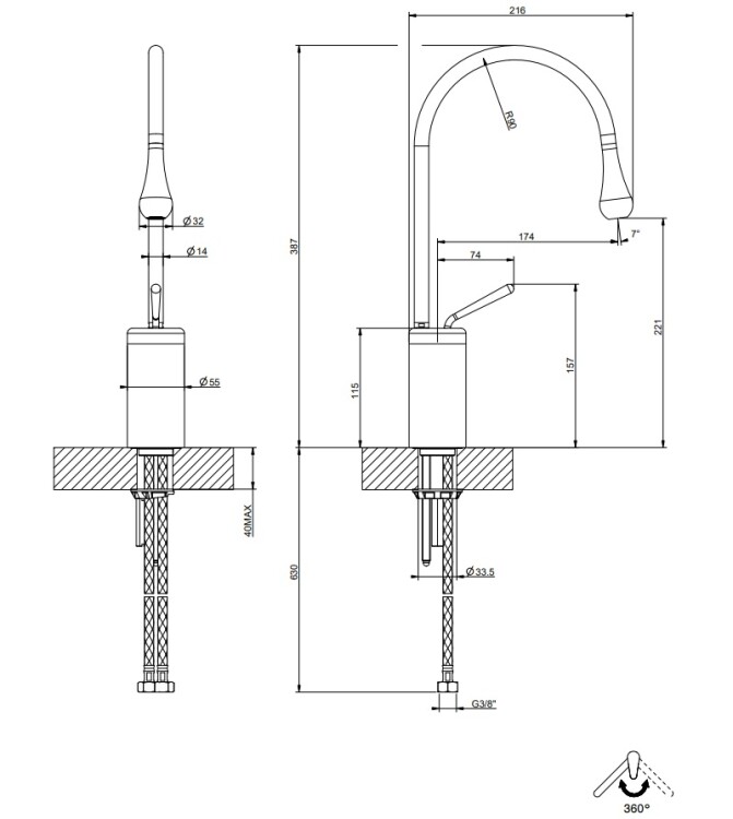 Смеситель для раковины, Gessi, Goссia, тип открывания воды-однорычажный джойстик, тип регулирования воды-керамический картридж, монтаж-на раковину/столешницу, отверстия для монтажа-1, высота, мм-387, вынос излива, мм-174, радиус излива-90, тип излива-поворотный, донный клапан-отсутствует, тип подводки-гибкая, стандарт подвода воды-3/8", цвет-Copper GHRC Смеситель для раковины, Gessi, Goссia, цвет-Copper GHRC
