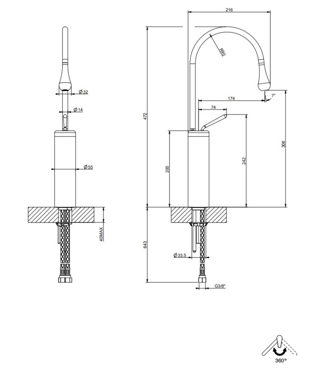 Смеситель для раковины, Gessi, Goссia, тип открывания воды-однорычажный джойстик, тип регулирования воды-керамический картридж, монтаж-на раковину/столешницу, отверстия для монтажа-1, высота, мм-472, вынос излива, мм-174, радиус излива-90, тип излива-поворотный, донный клапан-отсутствует, тип подводки-гибкая, стандарт подвода воды-3/8", цвет-Copper GHRC Смеситель для раковины, Gessi, Goссia, цвет-Copper GHRC