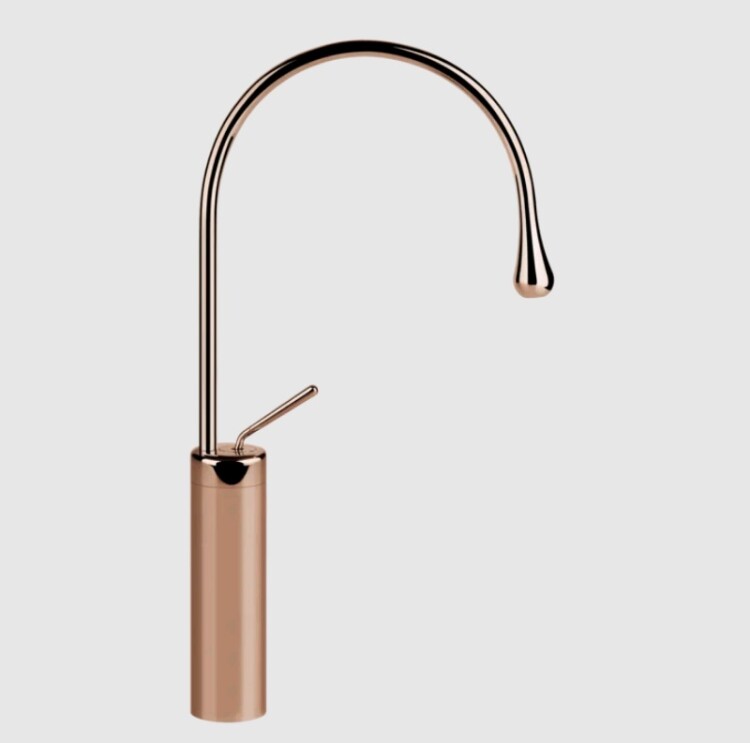 Смеситель для раковины, Gessi, Goссia, тип открывания воды-однорычажный джойстик, тип регулирования воды-керамический картридж, монтаж-на раковину/столешницу, отверстия для монтажа-1, высота, мм-523, вынос излива, мм-244, радиус излива -125, тип излива-поворотный, донный клапан-отсутствует, тип подводки-гибкая, стандарт подвода воды-3/8", цвет-Copper GHRC Смеситель для раковины, Gessi, Goссia, цвет-Copper GHRC