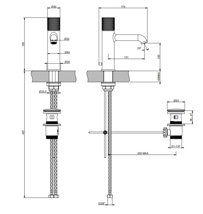 Смеситель для раковины, Gessi, Habito Cesello, тип открывания воды-однорычажный, тип регулирования воды-керамический картридж, монтаж-на раковину/столешницу, отверстия для монтажа-1, высота, мм-192, вынос излива, мм-131, тип излива-неподвижный, донный клапан-есть, тип подводки-гибкая, стандарт подвода воды-3/8", цвет-Black Metal Brushed PVD Смеситель для раковины, Gessi, Habito Cesello, цвет-Black Metal Brushed PVD