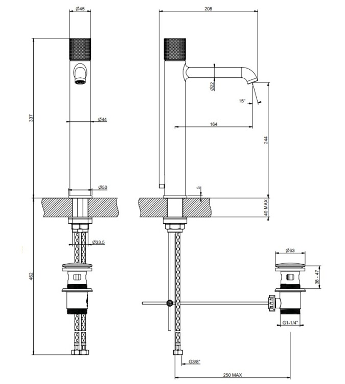 Смеситель для раковины, Gessi, Habito Cesello, тип открывания воды-однорычажный, тип регулирования воды-керамический картридж, монтаж-на раковину/столешницу, отверстия для монтажа-1, высота, мм-337, вынос излива, мм-164, тип излива-неподвижный, донный клапан-есть, тип подводки-гибкая, стандарт подвода воды-3/8", цвет-Black Metal Brushed PVD Смеситель для раковины, Gessi, Habito Cesello, цвет-Black Metal Brushed PVD