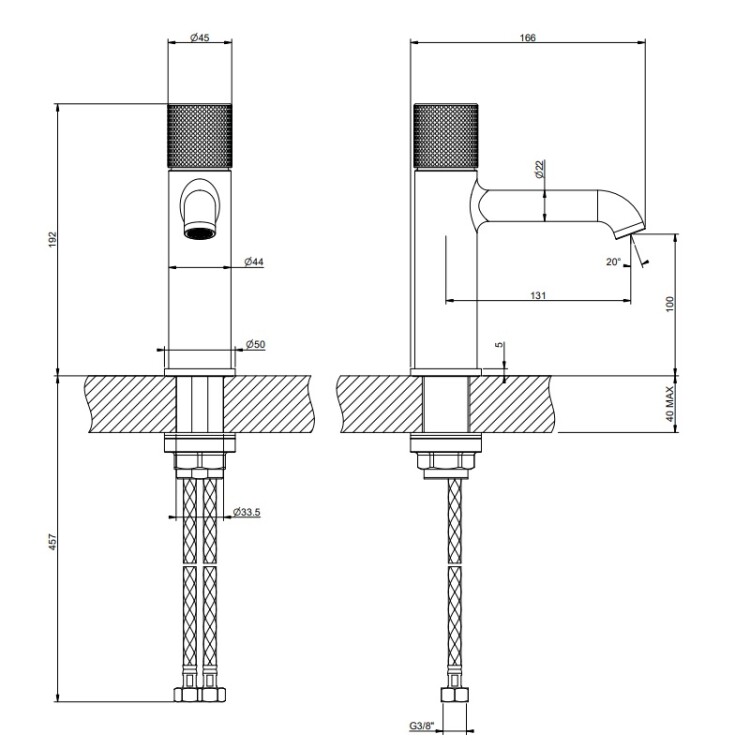 Смеситель для раковины, Gessi, Habito Cesello, тип открывания воды-однорычажный, тип регулирования воды-керамический картридж, монтаж-на раковину/столешницу, отверстия для монтажа-1, высота, мм-192, вынос излива, мм-131, тип излива-неподвижный, донный клапан-отсутствует, тип подводки-гибкая, стандарт подвода воды-3/8", цвет-Brushed Brass PVD Смеситель для раковины, Gessi, Habito Cesello, цвет-Brushed Brass PVD