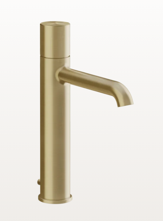 Смеситель для раковины, Gessi, Habito, тип открывания воды-однорычажный, тип регулирования воды-керамический картридж, монтаж-на раковину/столешницу, отверстия для монтажа-1, высота, мм-266, вынос излива, мм-164, тип излива-неподвижный, донный клапан-есть, с соединительными шлангами, тип подводки-гибкая, стандарт подвода воды-3/8", цвет-Brushed Brass PVD Смеситель для раковины, Gessi, Habito, цвет-Brushed Brass PVD