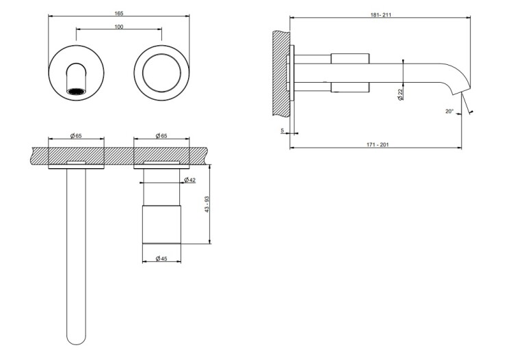 Смеситель для раковины, Gessi, Habito, тип открывания воды-однорычажный, тип регулирования воды-керамический картридж, монтаж-настенный встраиваемый, отверстия для монтажа-2, вынос излива, мм-171-201, тип излива-неподвижный, тип подводки-жесткая, стандарт подвода воды-1/2", внутренняя часть-необходимо заказать, цвет-хром Смеситель для раковины, Gessi, Habito, цвет-хром