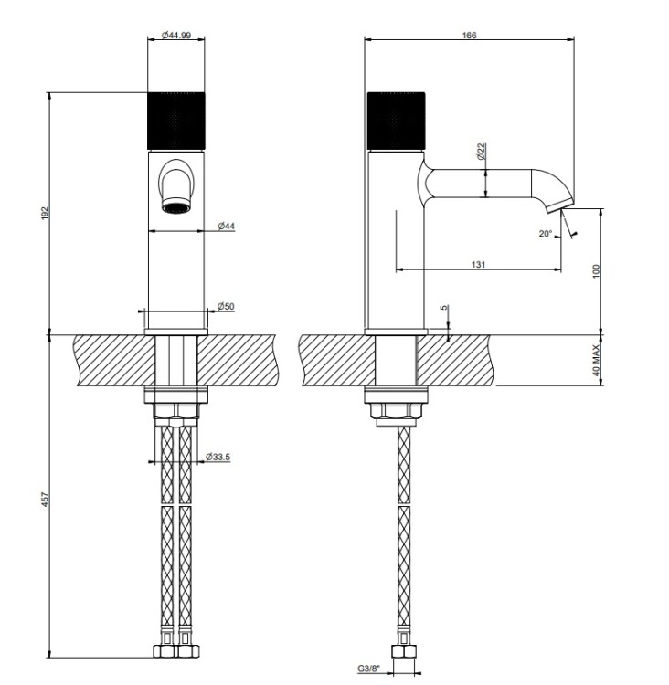 Смеситель для раковины, Gessi, Habito Diamantato, тип открывания воды-однорычажный, тип регулирования воды-керамический картридж, монтаж-на раковину/столешницу, отверстия для монтажа-1, высота, мм-192, вынос излива, мм-131, тип излива-неподвижный, донный клапан-отсутствует, тип подводки-гибкая, стандарт подвода воды-3/8", цвет-Black Metal Brushed PVD Смеситель для раковины, Gessi, Habito Diamantato, цвет-Black Metal Brushed PVD