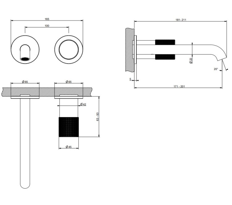 Смеситель для раковины, Gessi, Habito Diamantato, тип открывания воды-однорычажный, тип регулирования воды-керамический картридж, монтаж-настенный встраиваемый, отверстия для монтажа-2, высота, мм-65, вынос излива, мм-171-201, тип излива-неподвижный, донный клапан-отсутствует, тип подводки-жесткая, стандарт подвода воды-1/2", внутренняя часть-необходимо заказать, цвет-хром Смеситель для раковины, Gessi, Habito Diamantato, цвет-хром