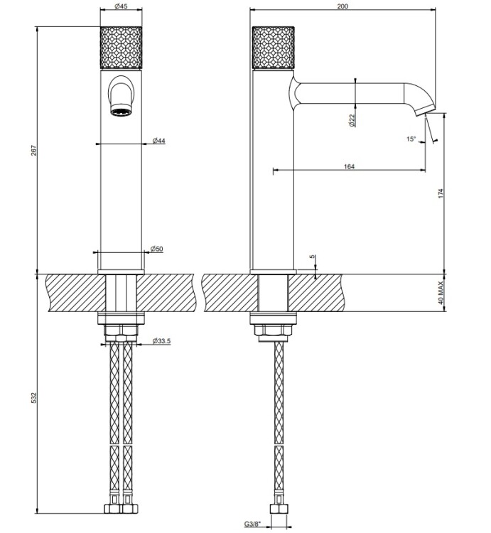 Цвет | медь брашированная/шлифованная PVD (Copper Brushed PVD) |