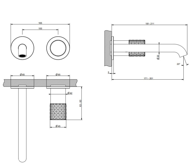 Смеситель для раковины, Gessi, Habito Intreccio, тип открывания воды-однорычажный, тип регулирования воды-керамический картридж, монтаж-настенный встраиваемый, отверстия для монтажа-2, высота, мм-65, вынос излива, мм-171-201, тип излива-неподвижный, донный клапан-отсутствует, тип подводки-жесткая, стандарт подвода воды-1/2", внутренняя часть-необходимо заказать, цвет-Finox Brushed Nickel Смеситель для раковины, Gessi, Habito Intreccio, цвет-Finox Brushed Nickel