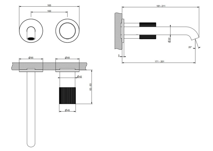 Смеситель для раковины, Gessi, Habito, RIGATO, тип открывания воды-однорычажный, тип регулирования воды-керамический картридж, монтаж-настенный встраиваемый, отверстия для монтажа-2, вынос излива, мм-171-201, тип излива-неподвижный, донный клапан-отсутствует, тип подводки-жесткая, стандарт подвода воды-1/2", внутренняя часть-необходимо заказать, цвет-Brushed Brass PVD Смеситель для раковины, Gessi, Habito, RIGATO, цвет-Brushed Brass PVD