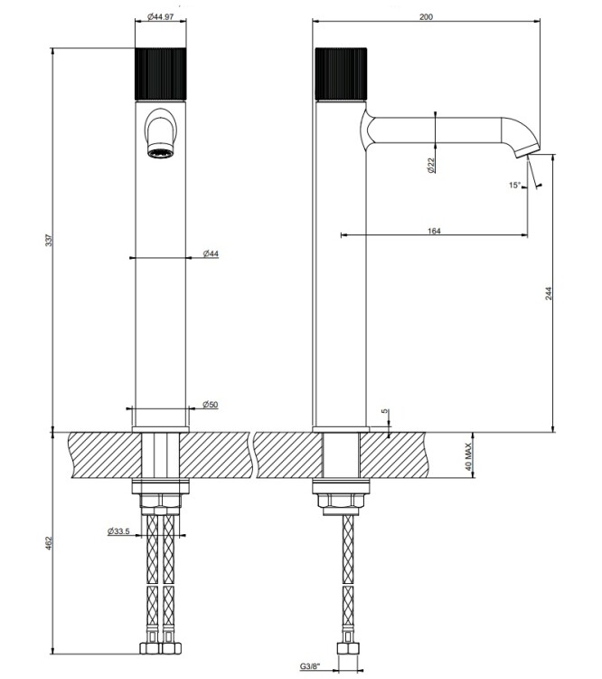 Смеситель для раковины, Gessi, Habito Rigato, тип открывания воды-однорычажный, тип регулирования воды-керамический картридж, монтаж-на раковину/столешницу, отверстия для монтажа-1, высота, мм-337, вынос излива, мм-164, тип излива-неподвижный, донный клапан-отсутствует, тип подводки-гибкая, стандарт подвода воды-3/8", цвет-Finox Brushed Nickel Смеситель для раковины, Gessi, Habito Rigato, цвет-Finox Brushed Nickel