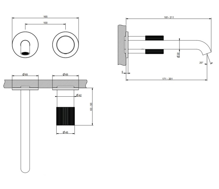 Смеситель для раковины, Gessi, Habito Rigato, тип открывания воды-однорычажный, тип регулирования воды-керамический картридж, монтаж-настенный встраиваемый, отверстия для монтажа-2, высота, мм-65, вынос излива, мм-171-201, тип излива-неподвижный, донный клапан-отсутствует, тип подводки-жесткая, стандарт подвода воды-1/2", внутренняя часть-необходимо заказать, цвет-хром Смеситель для раковины, Gessi, Habito Rigato, цвет-хром