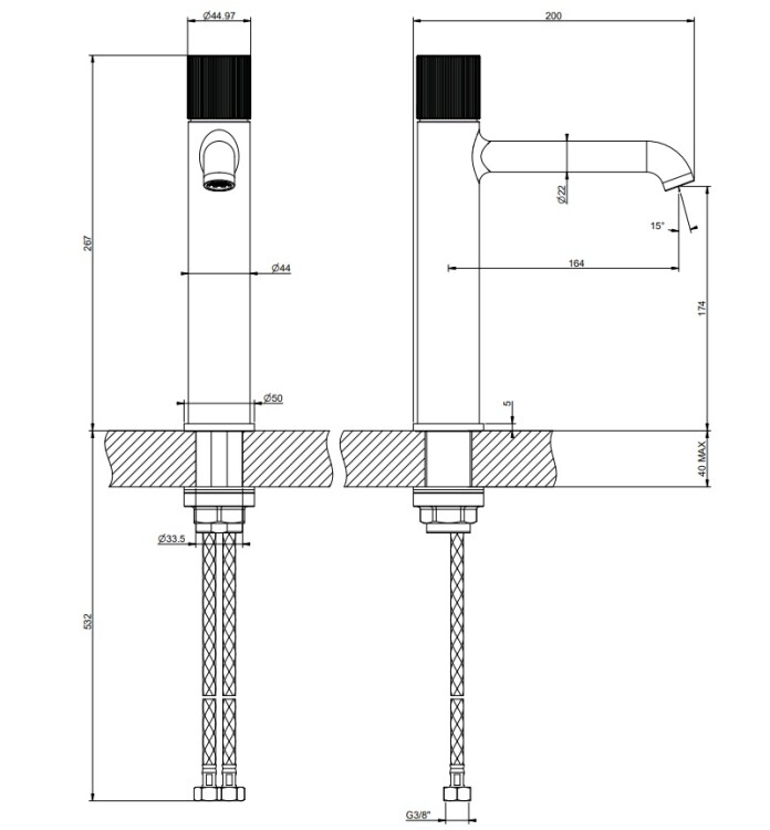Смеситель для раковины, Gessi, Habito Rigato, тип открывания воды-однорычажный, тип регулирования воды-керамический картридж, монтаж-на раковину/столешницу, отверстия для монтажа-1, высота, мм-267, вынос излива, мм-164, тип излива-неподвижный, донный клапан-отсутствует, тип подводки-гибкая, стандарт подвода воды-3/8", цвет-Warm Bronze Brushed PVD Смеситель для раковины, Gessi, Habito Rigato, цвет-Warm Bronze Brushed PVD