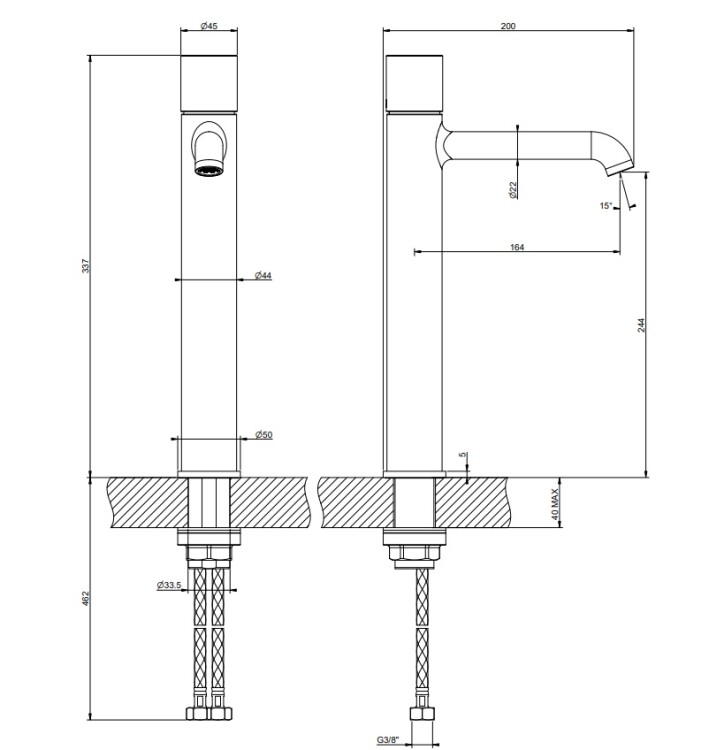 Смеситель для раковины, Gessi, Habito Unito, тип открывания воды-однорычажный, тип регулирования воды-керамический картридж, монтаж-на раковину/столешницу, отверстия для монтажа-1, высота, мм-337, вынос излива, мм-164, тип излива-неподвижный, донный клапан-отсутствует, тип подводки-гибкая, стандарт подвода воды-3/8", цвет-Brushed Brass PVD Смеситель для раковины, Gessi, Habito Unito, цвет-Brushed Brass PVD