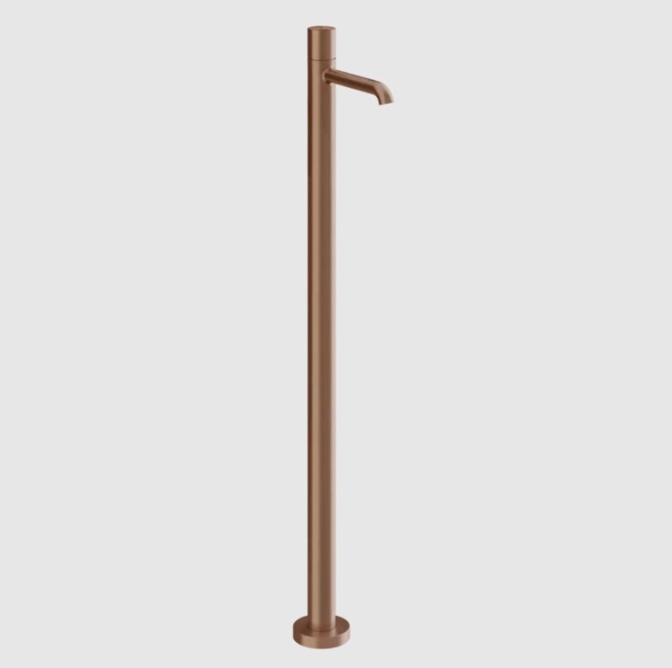 Смеситель для раковины, Gessi, Habito Unito, тип открывания воды-однорычажный, тип регулирования воды-керамический картридж, монтаж-напольный, отверстия для монтажа-1, высота, мм-1094-1154, вынос излива, мм-164, тип излива-неподвижный, донный клапан-отсутствует, тип подводки-жесткая, стандарт подвода воды-1/2", внутренняя часть-необходимо заказать, цвет-медь брашированная/шлифованная PVD (Copper Brushed PVD) Смеситель для раковины, Gessi, Habito Unito, цвет-Copper Brushed PVD