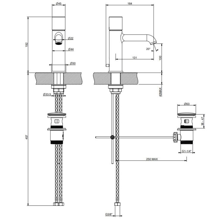 Смеситель для раковины, Gessi, Habito Unito, тип открывания воды-однорычажный, тип регулирования воды-керамический картридж, монтаж-на раковину/столешницу, отверстия для монтажа-1, высота, мм-192, вынос излива, мм-131, тип излива-неподвижный, донный клапан-есть, тип подводки-гибкая, стандарт подвода воды-3/8", цвет-Black Metal PVD Смеситель для раковины, Gessi, HabitoUnito, цвет-Black Metal PVD