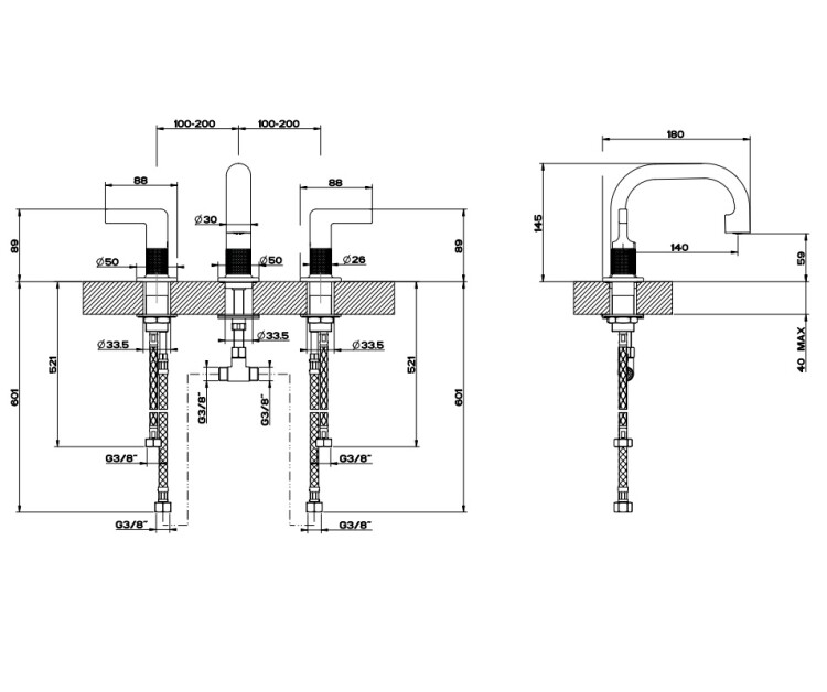 Смеситель для раковины, Gessi, Inciso, тип открывания воды-вентильный, тип регулирования воды-керамическая кран-букса, монтаж-на раковину/столешницу, отверстия для монтажа-3, высота, мм-145, вынос излива, мм-140, тип излива-неподвижный, донный клапан-отсутствует, тип подводки-гибкая, стандарт подвода воды-3/8", цвет-Aged Bronze Смеситель для раковины, Gessi, Inciso, цвет-Aged Bronze