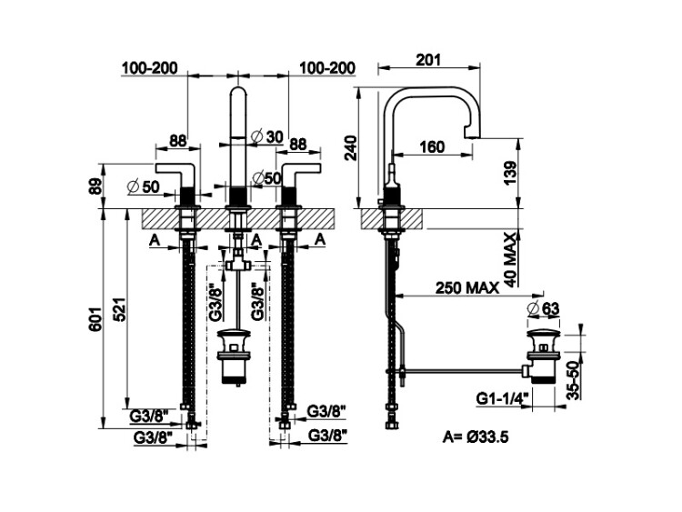 Смеситель для раковины, Gessi, Inciso, тип открывания воды-двухрычажный, отверстия для монтажа-3, высота, мм-240, вынос излива, мм-160, донный клапан-есть, тип подводки-гибкая, стандарт подвода воды-3/8", цвет-Aged Bronze Смеситель для раковины, Gessi, Inciso, цвет-Aged Bronze