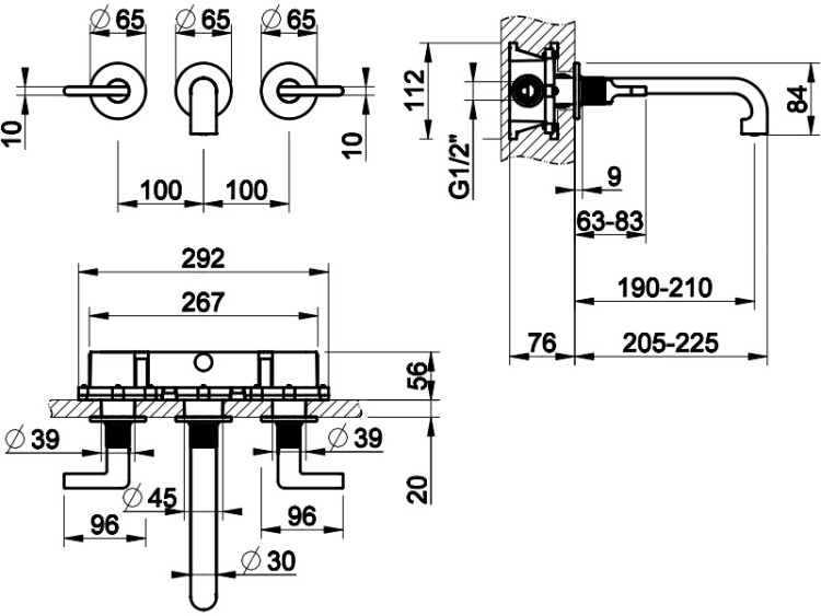 Смеситель для раковины, Gessi, Inciso, тип открывания воды-двухрычажный, тип установки-встраиваемый в стену, отверстия для монтажа-3, вынос излива, мм-190-210, стандарт подвода воды-1/2", внутренняя часть-необходимо заказать, цвет-Aged Bronze Смеситель для раковины, Gessi, Inciso, цвет-Aged Bronze