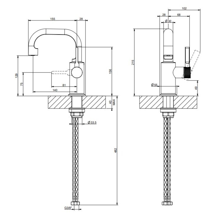 Смеситель для раковины, Gessi, Inciso, тип открывания воды-однорычажный, тип регулирования воды-керамический картридж, монтаж-на раковину/столешницу, отверстия для монтажа-1, высота, мм-215, вынос излива, мм-140, тип излива-неподвижный, донный клапан-отсутствует, тип подводки-гибкая, стандарт подвода воды-3/8", цвет-Black Metal Brushed PVD Смеситель для раковины, Gessi, Inciso, цвет-Black Metal Brushed PVD